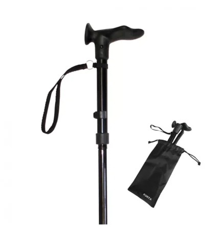 Bengala extensível e dobrável de alumínio cor preta e com punho anatomico em termoplástico.