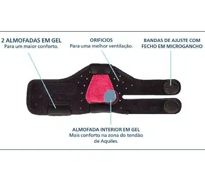 Características: Composto por 2 componentes, uma cinta que é colocada logo acima dos maléolos e um suporte com uma união,