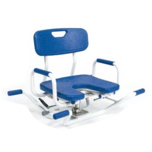 Assento giratório para banheira, facilitando a entrada e a saída.