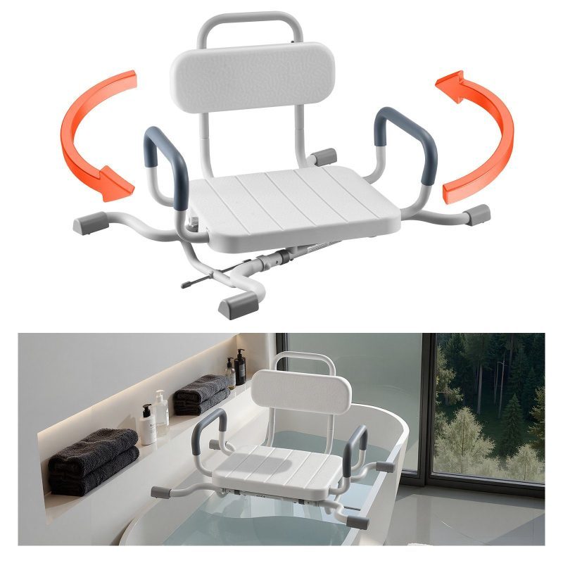 Cadeira de banho rotativa para uso na banheira. Entrar e sair da banheira é muito mais fácil. Indicado para pessoas com mobilidade reduzida.