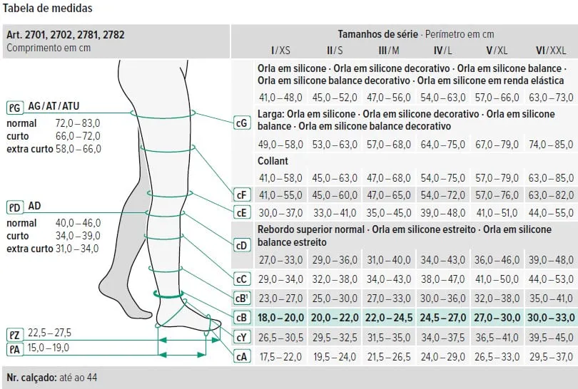 Indicações: Insuficiência venosa profunda (IVC), varicose com tendência para edema, após escleroterapia, varicose acentuada durante o período de gravidez, após tromboflebites superficiais
