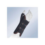 Orliman Ortótese Imobilizador Punho e Polegar MFPD81 em tecido semirrígido acolchoado e impermeável e forrado em algodão anelado muito resistente e suave, com fecho ajustável em velcro que da uma maior adaptação da ortótese e tala palmar e polegar em alumínio flexível/moldável e amovível para controlo da flexão. Indicado em caso de necessidade de imobilização relativa do punho e do polegar, e proteção das articulações carpometacarpiana e metacarpofalângica.